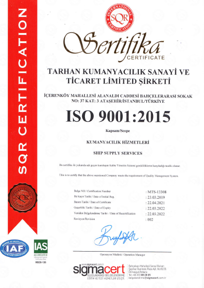 We would be glad to introduce our company Tarhan Shipchandler, that made its principle in the chandlery sector to present the best services to its clients by guaranteeing the fastest delivery of the highest quality products with lowest prices.